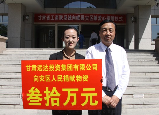 [2012-5-23]扶危濟困 奉獻社會 [2012-5-23]心系災區(qū) 大愛遠行 [2011-4-10]甘肅遠達集團向青海玉樹地震災區(qū)捐助價值30萬...